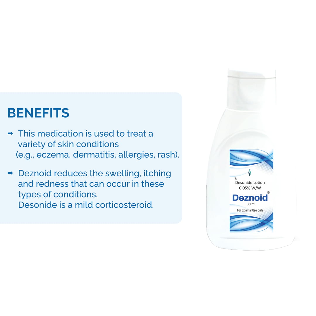 Deznoid reduces the swelling, itching and redness that can occur in these types of conditions.