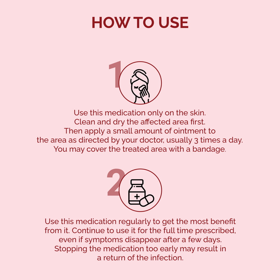 3. Application: Mupirocin ointment should be applied topically to the affected area of the skin as directed by your healthcare professional. It's important to thoroughly clean and dry the area before applying the ointment. Follow the instructions provided by your healthcare professional or as indicated on the medication label.