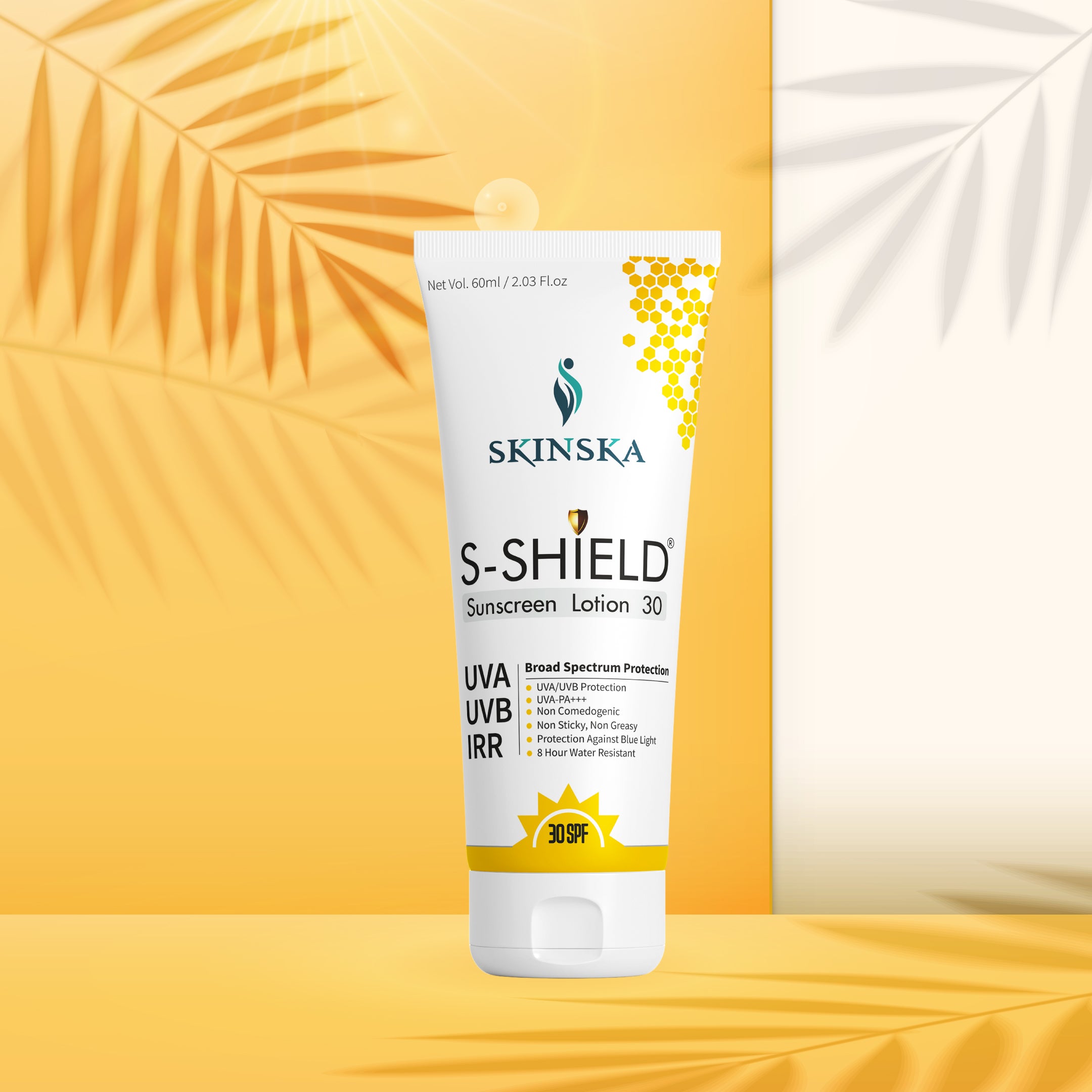 S Shield Sunscreen Lotion SPF 30 PA+++ offers broad-spectrum UVA/UVB protection with a lightweight, non-greasy formula.